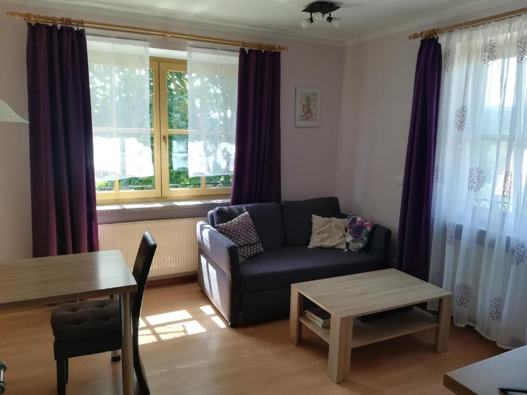 mit 1 Schlafzimmer und Schlafsofa im Wohnzimmer